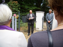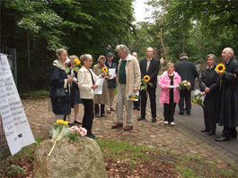 Nach dem Gottesdienst erinnerte eine Gedenkfeier am Mahnmal im Grotiusweg an die Geschichte des Hauses und seine